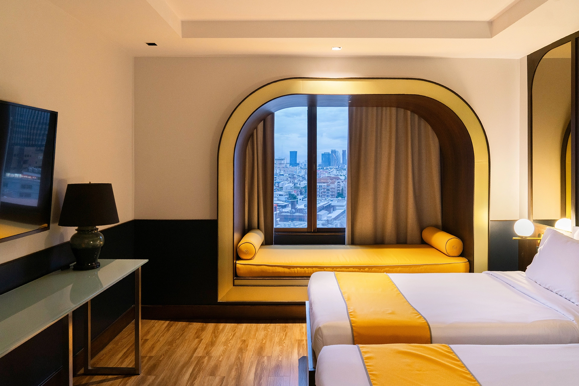 The spacious Superior room is designed with a welcoming décor of warm colors and fantastic views of the city center.